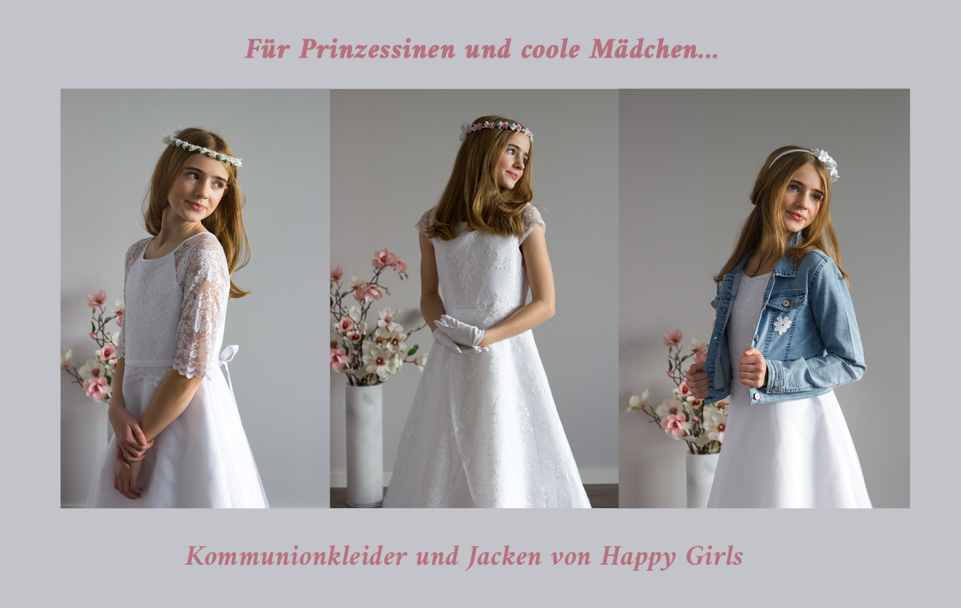 Wir haben für die Erstkommunion hochwertige Kommunionkleider und Zubehör für Sie ausgesucht. Bei uns finden Sie ein exclusive Kommunionkleider, ein schlichtes Kommunionkleid in A-Linie oder elegantes Mädchenkleid in weiß und creme aus Satin. Wir präsentieren Ihnen eine sehr große Auswahl an Kommunionjacken und Kommunion Boleros aus der neuesten Kollektion. Eine warme Kommunion Jacke aus Fell ist besonders im April wichtig, da das Wetter meistens noch unbeständig ist. Kaufen Sie ein Kommunion Bolero aus Spitze oder Satin, sowie wichtige Kommunion Accessoires, wie Kommuniontasche und Kerzenrock in weiß oder ivory, passend zum Kommunionkleid. Auch Kommunionschuhe oder Mädchen Kommunion Haarschmuck für die Kommunionfrisur dürfen an dem besonderen Tag nicht fehlen.
